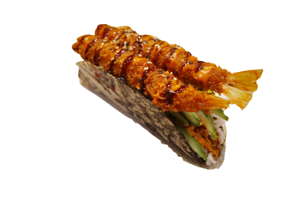 a signature crispy seaweed shell filled with seasoned rice for a crunchy, flavorful hand-held experience.